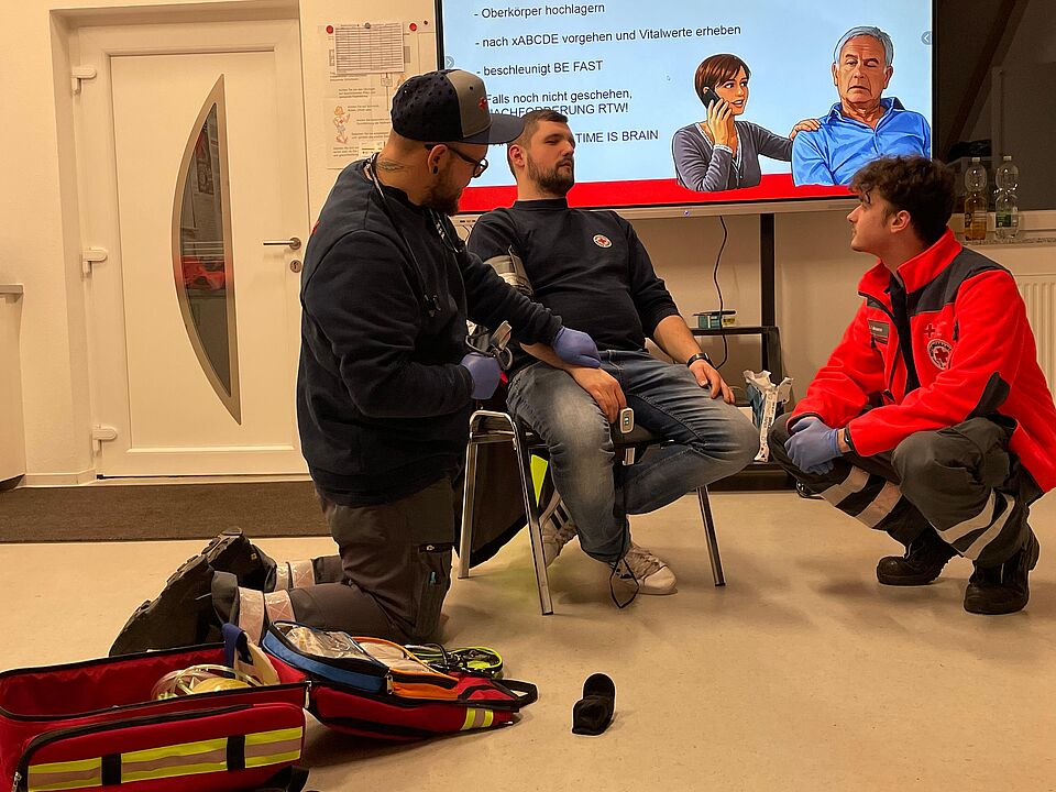 Den Helferinnen und Helfern wurden die relevanten Maßnahmen anhand des xABCDE-Schemas vermittelt. Ergänzend dazu wurden unter anderem die Schemata BE-FAST und SAMPLER besprochen.